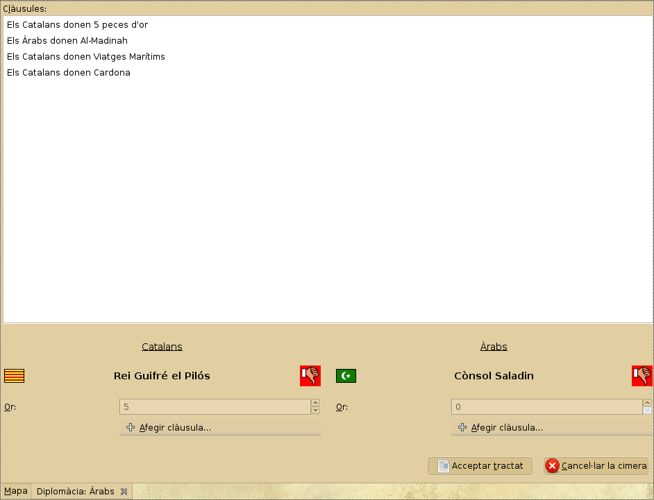 Si desitges una coexistència pacífica més permanent amb un altre jugador, pots entrar en un Armistici, que al cap d'un altre nombre donat de torns es convertirà en un tractat de Pau permanent. Trencar un Armistici et retornarà directament a la Guerra.